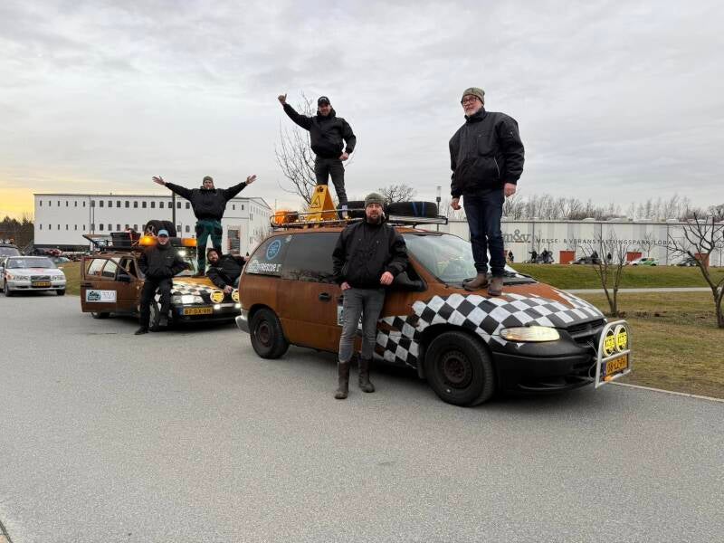 Met barrels die nét nog rijden, versierd met tape, humor en hoop, storten we ons in het avontuur.